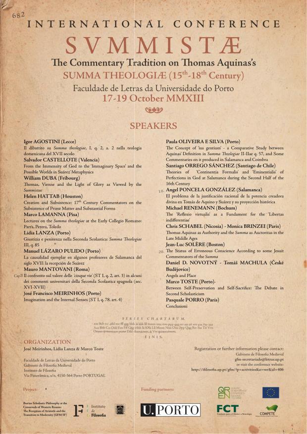 This conference is part of the research project Iberian Scholastic Philosophy at the Crossroads of Western Reason: The Reception of Aristotle and the Transition to Modernity directed by J. Meirinhos and funded by FCT.